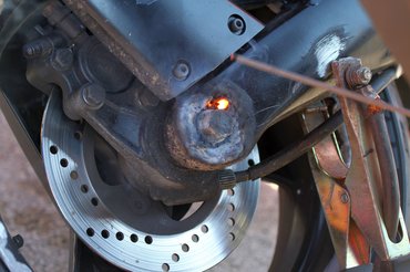 Kisütött a nap, a Totalbike szerkesztőségi csapata aktívan szerel - biztonsági szempontból levesszük a hátsó irányjelzőket, az elsőket pedig leragasztják. Ez azért fontos, mert esésnél nem szórják meg szilánkkal a pályát. Ez egyébként előírás, ugyanebből a megfontolásból a tükröket is le kell szerelni a versenygépekről.