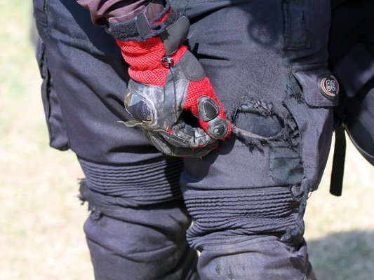 Anti és a PwC csapat közös esése utáni pillanatok. Anti ugye elcsúszott, a mögötte érkező pedig áthajtott rajta. Szerencsére nem tört semmije, de a gerincvédő mintája kivehető a hátán még mindig. Hordjatok gerincvédőt!