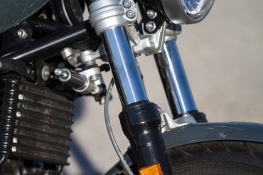 Ami erre képes, az a futómű és a kormányzás. Az újabb, olcsóbb R nineT változatokba egyszerű, hagyományos első villa kerül, ami önmagában nem lenne baj, de a Pure-ra biztosan ráférne még némi hangolás. Úgy tűnt, a rugók merevségéhez a csillapítás nem elegendő, így minden úthibát érezni, de kicsit még utánaleng a motor. Ráadásul a Pure kanyarodni sem szeret igazán. A széles kormány ugyan pontos manőverezést tesz lehetővé, de lassú, szűk kanyarokban a kis kománykitérítési szög miatt nem igazán kezes, és tempósabb fordulókban sem éreztem elég agilisnek.