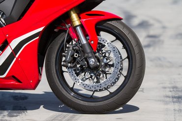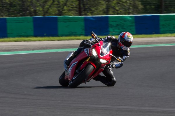 A Hondánál élesen láthatóvá tették a mívesebb cuccokat: a váz és a lengővilla nyers aluszínben pompázik, a HRC tricolor fényezés is az SP kiváltsága. Az együléses kivitel nem véletlen: a félaktív Öhlins futómű terhelhetősége mindössze 130 kg. Portimaoban nem, de a Hungaroringes összehasonlító teszt után ki tudtam próbálni ezt is a CBR Track Days rendezvényen a Slovakiaringen. A széria Pirelli Supercorsáknak köszönhetően rendesen lehetett húzi a gázt, a gyors pályán ki tud nyújtózni az RR.