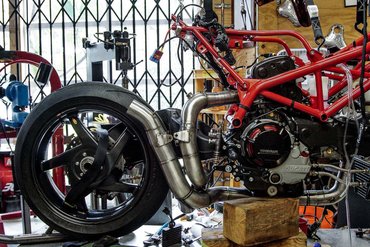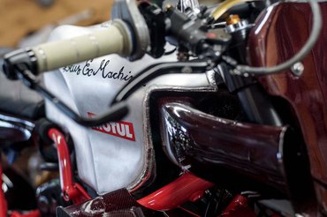 Első körben lebontott róla mindent, nem csak azt, ami felesleges, hanem azt is, ami nem szükséges. Utána nyúltak csak a blokkhoz, de csak annyi ideig, míg kivették, és berakták helyére a már gyárilag versenykészre reszelt 1198RS V2-esét.