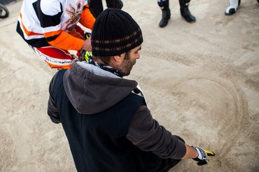 Ebéd után végre jöhet az igazi móka. Bár elsőre baromi egyszerűnek tűnik összesen két kanyart bevenni, a helyzet korántsem ilyen egyszerű. Ugyanis igen pontosan kell belőni az a pontot, ahol elzárod a gázt. Ha nem sikerül, a kigyorsításnál már késő lesz korrigálni. Ha hamar zártad el, elveszted a lendületed és megelőznek. Ha későn, kisodródsz, neki mennél a palánknak, elzárod a gázt, megelőznek. A mester megy néhány demó kört saját YZ450-esével, majdnem sikerül is neki átlépni a kormányt.