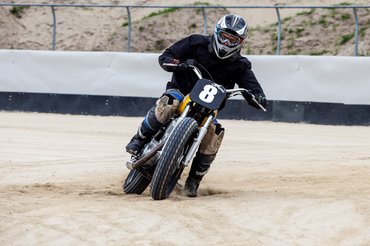 Már maga a pálya is külön tudomány, ugyanis meghatározott összetételű talaj kell hozzá – a tulaj, Szilvási Péter neve sokaknak ismerős lehet, indult már a Dakaron is, miután beleszeretett a salakmotorba, Monor mellett nekiállt felépíteni az ország első flat track arénáját. Egyébként az Amerikából származó, dirt track néven is ismert erőcsúsztatós műfajt eredetileg döngölt agyagos pályákon űzték, nagyobb pályákon akár kétszáz körüli sebességgel beesve a kanyarba.