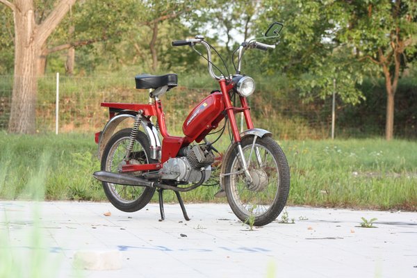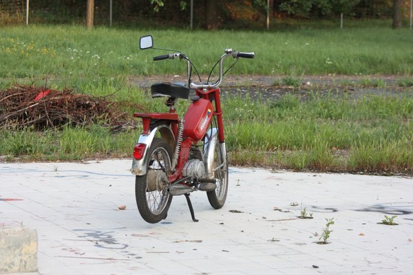 Eleinte kicsit köhögött, amit betudtunk az ébredés utáni sokknak. Hamar összeszedte magát, a kuplungbovdenen kellett állítani, mert megnyúlt az évek alatt, de utána már szépen lehetett csúsztatni, és a két szűk fokozatot szépen vette. Meglepően jól gyorsul, cserébe viszont lassú. Az egyes nevetségesen rövid, de legalább a falon felmegy. A kettes már kicsit hosszabb, és egészen 40-45 körüli tempóig el tudtuk kergetni. Másnap el is kezdtük a rendberakást.