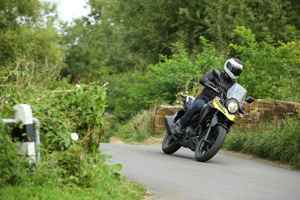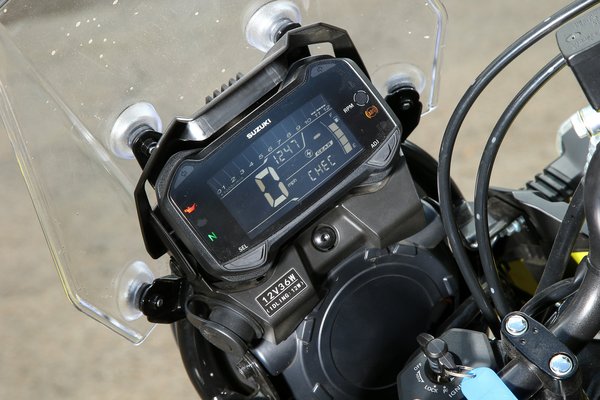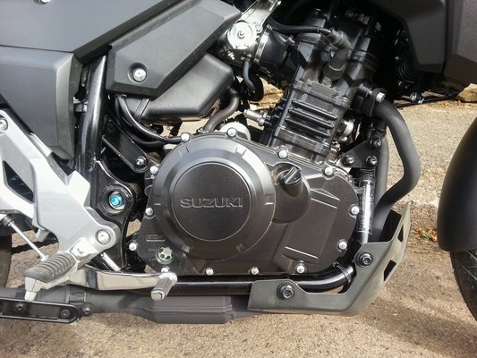 A vele közös műszaki alapokra épített V-Strom 250 blokkjában az Euro4-esítéssel együtt találtak még plusz egy lóerőt (25 LE 8000-nél) és egy Newtonmétert (23 Nm 6580-nál) – a súlyra csak megtankolt tömeget találtam, az öttel több, viszont nagyjából ennyivel lett nagyobb a tank, tehát érdemi gyarapodás egyik oldalon sem történt. Egy 250-estől a 188 kiló sok, de az Inazumához hasonlóan a kis V-Strom is teljes értékű motor méreteivel rendelkezik, tehát csak a teljesítmény/tömeg aránya rossz, a kiterjedés/tömeg elég jónak számít, és míg csak tologatjuk, vagy ha már megyünk, könnyű motornak érződik.