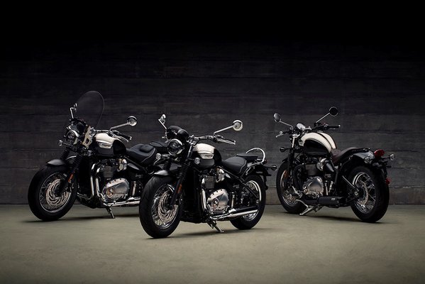 Az egyik a Triump Bonneville Bobber Black, ami a nevéhez hűen kellően fekete: a kipufogót, a lábtartókat, a blokköntvényt átfestették, illetve dupla első tárcsaféket kapott Brembo nyergekkel. Kisebb lett az első kerék is, az alapmodell 17 collos felnije helyett 16-osat építettek be, és az abroncs is szélesebb lett. Ezeken felül a ledes fényszóró és a tempomat az újdonság.
