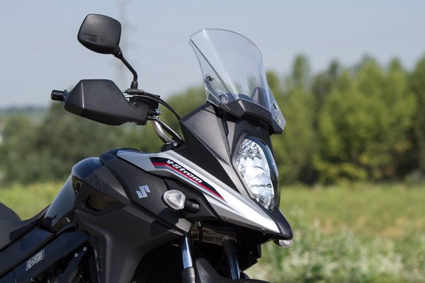 A szélvédő a legfájóbb hülyeség. Nem mintha szar lenne; egész jól tereli a szelet, igazából csak 140 felett kezdte zavaróan rázni a fejem a turbulencia, és 150-160-ig együtt tudtam élni vele – ez az előző V-Stromon is ugyanígy volt, ott a szélvédő tetejére szerelhető kis spoiler a megoldás. Nem is ez a botrány, hanem a szélvédőállítás. Három pozíció lehetséges, de négy imbuszt kell kihajtani, átteni a plexit egy másik pozícióba, és visszacsavarozni. Pedig a jó megoldás ott volt a polcon, az ezresen egy mozdulattal állítható a dőlésszög, akár menet közben is. Városban az a jó, ha jön a hűsítő menetszél, aztán ahogy nő a tempó, úgy kívánok egyre inkább elbújni az időjárás elől.
