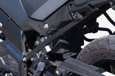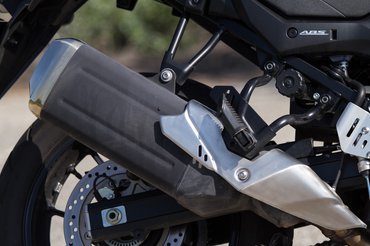 Az új kipufogórendszer ocsmány, de legalább könnyű, illetve ebbe már tandem katalizátort építettek, vagyis nem egy darab, nagy átmérőjű egység került bele, hanem sorba kötöttek két vékonyabbat, ezzel is karcsúsítva a motort. Az elhelyezése trükkös, ugyanis elég magasra húzták, hogy oldaltáskát már macerás legyen felkötni – rá is égettem a dobra –, ez finoman az oldaldobozok felé tereli a vásárlókat. Az utaskapaszkodó és a hátsó csomagtartó megnyugtatóan masszív, egyedül a fényezés a gyenge pontja, elég ránézni, és már le is pattogzik a kályhaezüst.