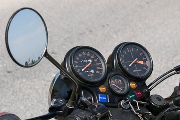 Indítok, azonnal elkapja az összes henger. Szorgos duruzsolás tölti meg a mélygarázs levegőjét – ezt a hangot szelni lehet és kenyérre tenni, olyan tömör, olyan finom. Kihajtok a napfényre, máris tolom vissza a szívatót a kisutcában, mert stabil az alapjárat. Innentől minden úgy működik, mint egy mai motoron, pillanatig nem kell gondolkodnom bármilyen kezelőszerv használatán.
