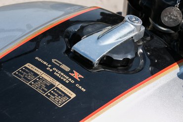 A csodák sora folytatódik: két vezérműtengely, egyenként nyolc helyen csapágyazva, hengerenként négy szelep (azaz összesen huszonnégy – ki látott 1978-ban olyat, bármiben?), hat darab kissé befelé fordított, 28-as, membrános vezérlésű Keihin-karbi (a szinkronmester rémálma). Mindez művészien kivitelezett Honda-öntvényekkel és szerelvényekkel. Az a blokk nem műszaki tárgy. Az egy szobor.