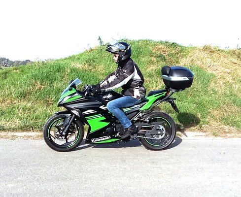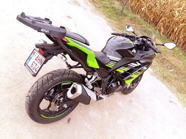 Dinamikus motorozáshoz egyszerűen rossz mind a motor teljesítménygörbéje, mind a fokozatok kiosztása. Hacsak nem szeret az ember folyton nyélgázon tépni. Szemben a Yamahával a Kawa csak 9000 fölött él, alatta dízeles élményt nyújt. Azt viszont atomstabilan, mint a legkezesebb robogó. Ráadásul ez jól pakolható, van kellő számú és ideális elhelyezésű akasztó szem és kampó, és kapni rá doboztartót is, amire én az egyik legnagyobb, 47 literes, két integrál sisakot is elnyelő ládát pakoltam. Rém csúf és fajtaidegen, viszont hamar nélkülözhetetlenné válik. Minden csomag belefér, és még az utasnak is jut háttámla. Nem is csoda, hogy a kis Ninja lett a mindenhova járó, munkába menő, gyerekcipelő, bevásárló, mindenes motorom.