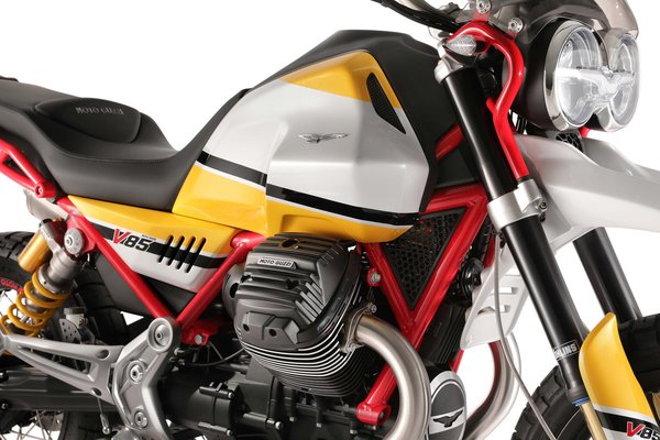 A Moto Guzzi őrületes trendérzékenységről tesz tanúbizonyságot, a V85-tel egyszerre üli meg a retró hullámot és a túraendurók szárnyalását, ráadásul nem csak egy átkozmetikázott valamit adnak, hanem ez egy teljesen új platform is. Az új 850-es, léghűtéses motor 80 lóerős teljesítményével ügyesen befér a V7/V9 család és az 1400-as California közé.