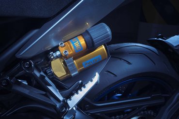 Az MT-10 SP után logikus döntés volt a Yamahától az MT-09-ből is készíteni egy csúcs-futóművű változatot. Az MT-09 SP viszont közel sem akkora forradalom, mint a nagy testvér: kapott egy Öhlins központi rugóstagot és egy minden paraméterében állítható első villát, de ez utóbbi nem a svéd futóműspecialistától, hanem a Kayabától származik.