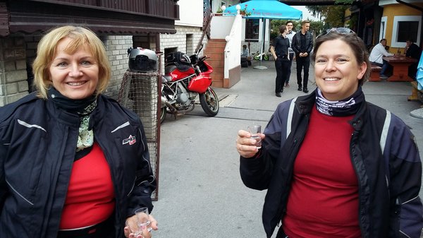 A szlovén túrára azért még megpróbálkoztam a két kis tatyóval, a maradék cuccokat pedig tanktáskában vittük magunkkal – elvégre összesen két éjszakányi ott alvásra készültünk. Kicsit azért tartottam az úttól, hiszen a Dolomitokban 210-220 kilométert tettünk meg naponta, most meg Domzaléig kellett mennünk az autópályán, ami közelebb van az 500-hoz. Kati állította Olaszország után, hogy jobban ül ezen a motoron, mint korábban a szemre sokkal kényelmesebbnek látszó és másfélszer nagyobb Yamaha XJ900-ason (a Ducati 750SS egy alig 190 kilós bicikli, lényegében levegőből van és picike is), ezért miatta nem is aggódtam. A saját derekamat és csuklómat féltettem.