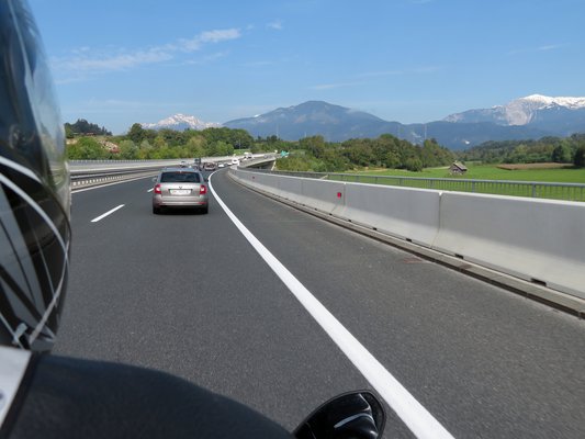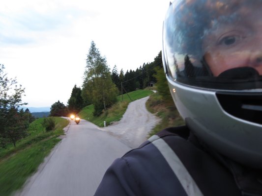Ez az inkompatibilitás a kinti túrarész elején már elkezdett ki-kiderülni. Az előző esti megérkezést Kareszék három évvel korábbról eltett csodapáleszával üdvözöltük, majd kellő mennyiségű sört is ráborítottunk, hogy hatalmasat aludjunk, ezért kissé nyikorogva, de hatalmas távolba nézéssel nyitottuk a napot. Domzale még nem a Triglav (ami meg ugye, az Alpok egy nyúlványa), még kell vagy negyven kilométert autópályázni ahhoz, hogy dimbes-dombossá, majd erősen hegyessé váljon az út, bár visszafelé, a déli íven tovább tartottak a tervek szerint a hegyek. Az én fejemben tehát olyan nettó 180 kilométernyi rendes motorozás volt előirányozva aznapra.