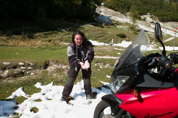 Csak ez a fránya Ducati... Azt már a Dolomitokban is észrevettem – bár mivel szezonnyitás előtt voltunk ott, ezért alig-alig láttunk motorost – hogy valahogy gyorsan kifogynak alóla a hágók. Amik a Kawával, Yamahával nagy, megmászandó, óriási falatok voltak, azok a hegyek ennek a motornak ilyen felpattogni, leugrálni való, játszótéri műtárgyak. Egyszerűen jól érzi magát sokkal gyorsabban, olyan mint a Tigris a Micimackóban – zajos, ugrál, vidám, mindig letapossa a zöldségeskertet és valakinek a lábára lép, holott csak örül. Máshol van az órajele.