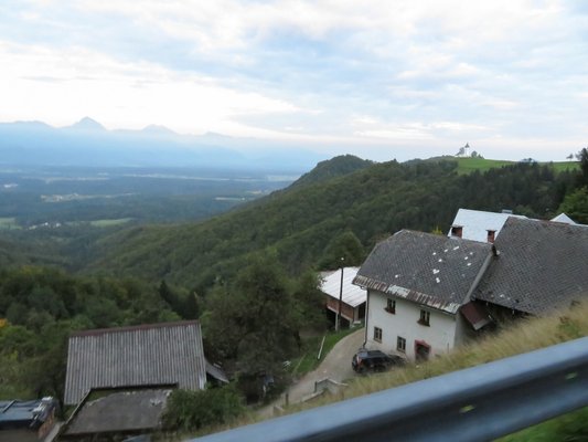 Tepertünk tovább, Szlovénia hihetetlen bugyrokat bontott ki magából minden újabb kanyarkombináció után. Volt, hogy azt hittük, már lent vagyunk a völgyben, kiértünk a faluból, jött egy erdőcsoport, két kanyar, és hopp, kint találtuk magunkat egy hajmeresztő meredély szélén, lent, az igazi völgyből pedig meredek púp emelkedett ki, tetején apró, fehér templommal. Majd fennsíkon motoroztunk, mintha csak nem is lennének hegyek a környéken, csak hogy utána nekimenjünk egy újabb, falszerűen magasodó útszakasznak.