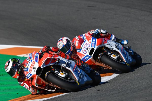 Érdekes jelenet volt a futam során Dovizioso és Lorenzo párharca. A spanyol nem akarta elengedni csapattársát, annak ellenére sem, hogy bemutatták neki az erre vonatkozó felszólítást. Ezen a ponton a csapatban kezdett eluralkodni a pánikhangulat, de Gigi Dall’Igna nemcsak remek mérnök, csodálatos főnök is egyben. Egy laza biccentéssel jelezte, hagyják a versenyzőket, úgysem ezen múlik a cím, eleve nem volt meg a győzelemhez szükséges tempó. Miután Dovizioso bukott, mosolyogva felállt székéből, és mindenkit megölelt, szinte világbajnok csapatként ünnepelte a Ducati munkatársait, és minden bizonnyal felkészültek Dovizioso kiállására.