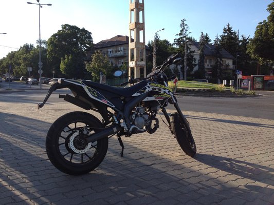 Minden baromi szépen működik rajta, a berúgókart akár kézzel is le lehet nyomni, és a legfinomabb rúgásra is életre kel a különolajozású kétütemű. Ha kiskamasz lennék, feltúrnám az összes hirdetési oldalt, és megpróbálnék kifogni egy olyan példányt, amit nem tett taccsra előttem egy másik kiskamasz, és szépen, fokozatosan elkezdeném vele megtanulni a motorozás alapjait. És ezért nem tudom eléggé dicsérni Benedeket, aki még egy vezetéstechnikai tréningen is részt vett, mielőtt a friss A1-es jogosítványa birtokában a következő, már ki is szemelt 125-ös gépére átül. Minden szempontból jár a virtuális plecsni!