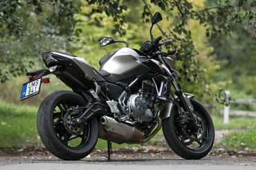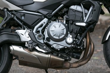 A blokk alapjaiban nem változott, inkább csak finomhangolták: új vezérműtengelyek, karcsúbb airbox, kisebb pillangószelep-átmérőjű injektorok – a végén pedig maradt 67 lóerő az ER-6 71-éből. Cserébe kapunk plusz két Newtonmétert (összesen 65), ráadásul 500-zal alacsonyabb fordulaton, 6500-nál, de megérte az áldozatokat, mert a Z650 állatul megy. Már olyan három-négyezres fordulat körül magára talál, és egészen 8 ezerig fickós, tehát éppen abban a középső tartományban betyár, ahol a legtöbbet motorozunk. Kipörgésgátló és üzemmódkapcsoló nincs, nem is hiányoztak, az ABS-en kívül egyedül csúszókuplung segít, hogy előrehaladott carpalis alagút szindrómával se álljunk keresztbe a kanyarbejáratnál.
