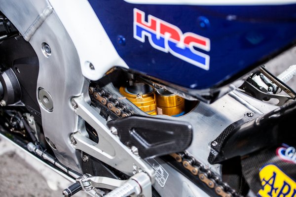 „A versenygépnek kétgyűrűs dugattyúi vannak, de azokkal nem lehet teljesíteni a károsanyag-kibocsátási határértékeket, így három dugattyúgyűrűt használtunk dugattyúnként” – mondja Hasegawa. „És persze be kellett helyezni egy önindítót. Ezen kívül a versenygépnek CNC-vel van megmunkálva a karterház öntvénye, az RC213V-S-nél ezt a lépést kihagytuk. A többi alkatrész az anyagját és a felületkezelését illetően megegyezik a versenygéppel.”