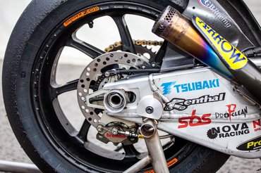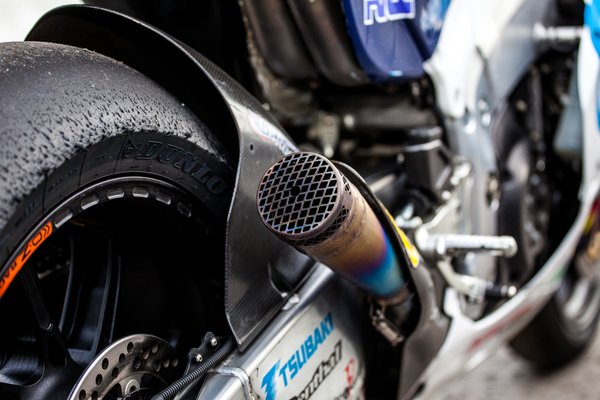 „A kipufogórendszert a HRC-től kapjuk, ezen nem változtattunk, esetleg a későbbiek során alakítunk majd valamennyit a hangtompítón. A szélvédő magasabb, a TT-n ez amúgy is fontos, a gyári túl alacsony egy ilyen kaliberű pályán, és Bruce testalkata miatt lecseréltük a kormányt, így jobban fekszik neki. Az idomok szintén a Hondától vannak, és karbonból készültek.”