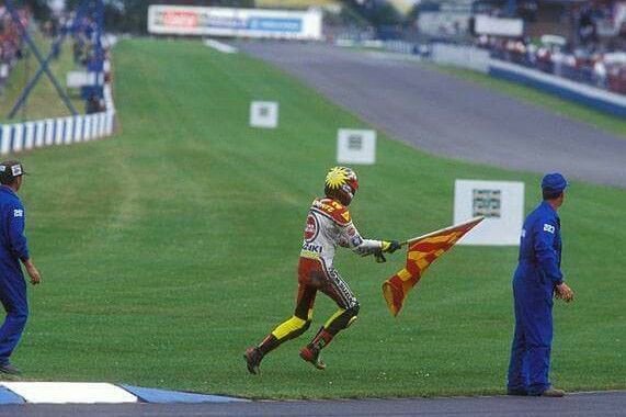 A versenyt mégsem ez tette emlékezetessé, hanem Schwantz reakciója: felpattant, és rohant a csíkos zászlóért, és a teljesen fogalmatlan versenybírók helyett integetett a többieknek, hogy olaj került a pályára. Utólag Wayne Gardner és Terry Rymer is köszönetet mondott neki, mert ha ő nem jelzi az olajfoltot, egészen biztosan elestek volna. (Ez amúgy mekkora régen minden jobb volt: ma el tudod képzelni, hogy egy pofáraeső Jorge Lorenzo vagy Marc Márquez felpattan, és elkezd integetni a zászlóval, mert félti a többi versenyzőt?)