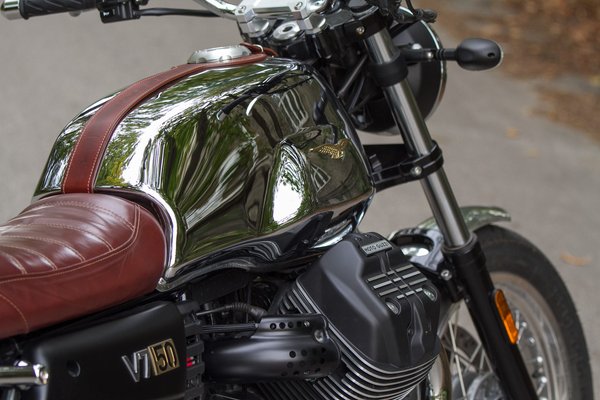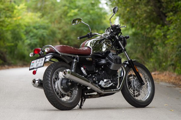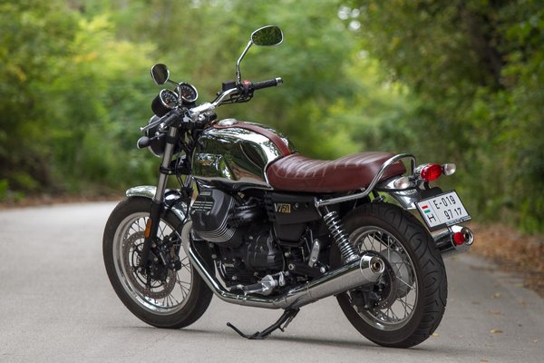 Ezek a legklasszikusabb arányok, az első kerék egy számmal nagyobb a hátsónál, meseszép a tank és az ülés vonala, a régimódi acél dupla bölcsővázba sem lehet belekötni, ez a forma volt ötven éve is a motorkerékpár. Az 1967-es ős-V7 tiszteletére készült az ezerdarabos Anniversario kiadás, amelynek alapját a V7 III Special adja, de a tükörkrómos tank, a bőrülés, a tankon átfutó lefogató, az alumíniumból mart tanksapka, a polírozott sárvédők csak ehhez járnak.