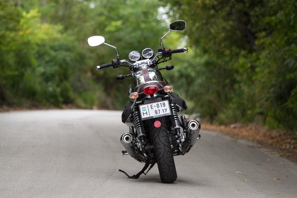 Rengeteg munka és fejlesztés ellenére is igazi régi motor maradt. Ilyesmit talán a Royal Enfield tud még, de már a Harley sem, mert abból már hiányzik a nyűglődés, az a fajta apró szarakodás, amit a veteránosok annyira szeretnek. Nem a harmincas évek szintje, de elég régen találkoztam olyannal, hogy indítás után várni kelljen, mert hidegen leböffen. Mármint perceket kell várni, amire a közel harmincéves Hondámnál sincs szükség, ott tíz másodperc után visszatolom a szívatót, és kész, ezen pedig injektoros létére a harmadik sarokig dajkálni kell az alapjáratot.