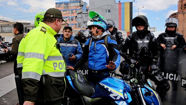 Ezrek tüntettek Kolumbia fővárosában, mert a kormány betiltotta, hogy motorosok utast szállítsanak (a 125 köbcenti feletti motorokra és robogókra vonatkozik csak), ugyanis a hatóságok ebben biztonsági kockázatot látnak. A biztonsági kockázat nem azt jelenti, hogy balesetveszélyes, hanem a motorkerékpárral elkövetett rablásokat ilyen felállásban követték el. A tüntetők ellen a rendőrség könnygázt vetett be.