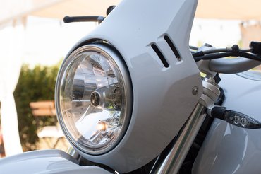 Az a kavarlycsőr-szerű, komikusan eltúlzott méretű első sárvédő, a narancsos-piros üléskárpit, a kerek fényszóró körüli mini-idom és a gyönyörű, külső kerékperemre fűzött küllős kerekek mágnesként vonzák a szemet. Az Urban G/S a dicséretes mértéktartás jegyében csupán egy kipufogódobot kapott, de így is annyi igényes és szép részlet van rajta, hogy a kötelező kávéházi megállók során hosszú percekig lehet úgy csodálni, hogy ne váljon unalmassá.