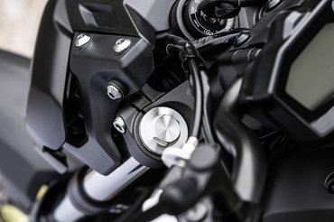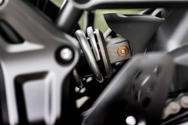 Az előző szériát leginkább a futóműve miatt kritizálták, 70 kiló feletti motorosoknak egyszerűen túl puha volt. Az újnál erősebb lett az első teleszkópok rugója, és a csillapítást is fickósabbra vették, de mindez semmi a központi gátlóhoz képest. Már ránézésre is teljesen új, az erősebb rugó kevesebb tekercsből áll, a csillapítás pedig sokkal feszesebb lett – ráadásul kapott egy húzófokozati állítócsavart, tehát igény esetén tovább keményíthető.