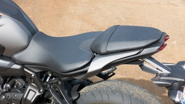 Az üléspozíció nagyon emlékezetet az MT-09-re, de annál mélyebben ülök – 805 mm az ülésmagasság, hivatásos zsokéknak is megfelel – előrébb van a lábtartó, a kormány pedig alacsonyabb. Létezik hozzá feláras extraként 2,8 centivel megemelt ülés, amivel magas emberek barátibbá tehetik a térdszöget. Az én 183 centimhez alap magassággal is tökéletes.