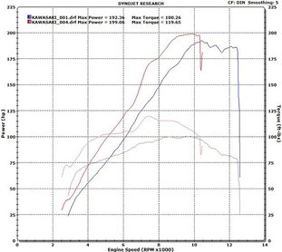 Szóval: ha a H2 SX-re tippeltél, veszítettél. A ZZR-en 199,06 lóerőt mértek, míg az H2 SX-en, 192,36-ot. Ami ennél is érdekesebb, hogy a kompresszoros motor teljesítménye hogy beesik 11 200-nál, amit egy kis szoftverfrissítéssel biztosan ki lehetne egyenesíteni.