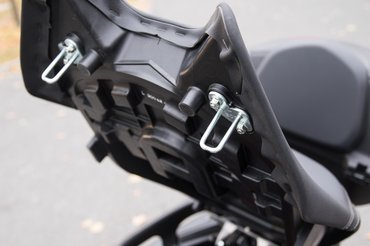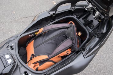 A blokkot új pozícióban rögzítették a vázban, amitől állítólag jobb lett az egyensúlya – nem mintha valaha is gond lett volna az egyensúlyával, meg amúgy is, olyan könnyű középállványra húzni, mint egy 250-est, szóval valószínűleg az ülés alatti tároló növelése volt az elsődleges cél. A hátsó dobozzal együtt tisztességes mennyiségű motyó szállítható, ráadásul a hátrafelé nyíló ülés ergonómiai mesterhúzás, hiszen a motorról leszállva egyből lehet pakolászni, nem kell helyezkedni hozzá, mint egy tisztújító kongresszuson. Az ülést két gázrugó tartja, nem lötyög, lecsukva határozottan bekattan – apróság ez, de az ilyen jó apróságokon múlik a minőségérzet.