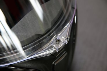 A plexi környékén több igényes megoldást is találni, például rendesen, retesszel záródik, tehát nem egy bütyök rögzíti lent, mint az enyémen, hanem tényleg egy zár. Ráadásul két állásban, tehát lehet egy kis rést hagyni, de olyankor sem a fokozatosan nyíló mechanika tartja ott, hanem stabilan tartja a zárnyelv, a nyitáshoz meg kell nyomni a gombot. Ez egyébként kíván egy kis megszokást, ugyanúgy, mint az állrész felhajtása. Csinos a megoldás, ahogyan zárnyelvet rögzítik a plexihez, egy csavar fogja, vagyis cserélhető, ha sikerül letörni.