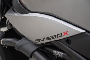 Funkcionális változtatás, hogy a teleszkópvilla előfeszítése állítható lett, illetve a tank 13,8 literről 14,5 literre nőtt, bár ez utóbbi nem kimondottan az SV650X sajátja, a 2018-as alapmodellre is ráfrissítették. A részletekkel viszont nem kézműveskedtek egy másodpercet sem, meghagyták a bumfordi hagyományos indexeket, sőt, a fékfolyadéknak sikerült egy sokkal rondább tartályt találniuk. A hasidom megvásárlását pedig kötelezőnek érzem, anélkül egyszerűen zavaros az alja.