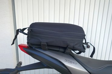 A motor hátuljára többet lehet rakodni, de továbbra is fontosabb szempont az egyszerű rögzítés a sok helynél. Az oldaltáskákhoz általában konzolra is szükség van, ezért maradnak az üléstáskák, vagy tail pack-ek. Az Aliexpresszen tízezer forint körül van millió féle, ezekből szintén a 10-15 liter körülieket lehet a legkönnyebben rögzíteni. A méretük és a súlyuk matt nem szükséges a lábtartó konzolhoz rögzíteni, elég az ülés alatti pántokat áthúzni. Mellesleg így nem szükséges a hátsó idomot sem leragasztani. A nagyobb méretű táskák vagy a hevederek ugyanis mindenképp rá fognak lógni a fényezésre, ezért is lesz a kacsaszalag a motoros jó barátja.