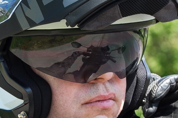 Mint minden hasonló sisaknál, a Combi 2 Duóban is van beépített napszemüveg, ami mindig ott van nálad. Nem torzít semennyire, vagyis ha lefelé nézek vele, ugyanott látom a lábam, ahol van. Tartaléknak mindenképp jó, de nekem picit hozzáér az orromhoz, így inkább saját napszemüveget használtam. Ha épp nálam volt.