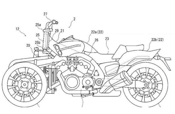 Mintha a Tricity és a Niken után vérszemet kaptak volna, és mindenből háromkerekűt akarnának építeni (a zongorának is három lába van :D:D:D) - még a VMAX-ból is, legalábbis erre utal a frissen előkerült szabadalmi rajz.