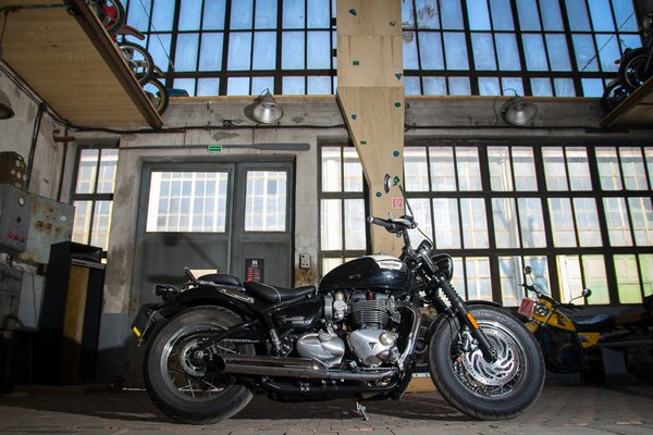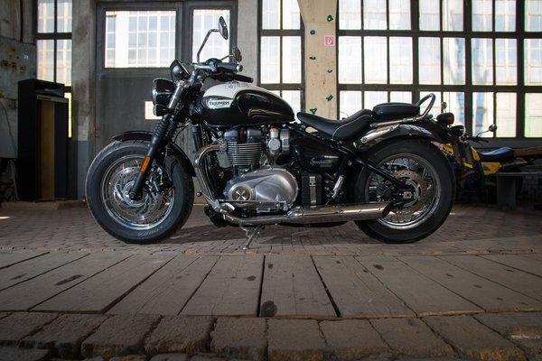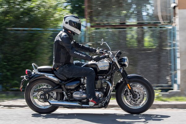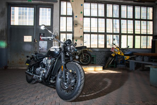 A nyomatékleadása egyenletes, a fokozatok hosszúak, és megcsinálták ugyanazt a trükköt, mint a szintén nevetséges literteljesítményű Street Twinnél, hogy alacsony fordulaton kellemesen el lehet csettegni, de nem nyírták ki a felső tartomány, így mint a nagy színészek, két teljesen eltérő karaktert is elő tud adni. Emiatt nem csak cruiserezni lehet vele, hanem motorozni is. A kormány elsőre furcsa, a markolat szinte az úttal párhuzamosan áll, mint egy talicskán, a lábtartó viszont jó helyre került, a térdet nem nyomja semmi, nincs akadálya, hogy a tankra rászorítva menjünk egy hegyeset.