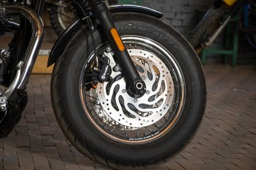 Cruiser szinten ez sportmotor, elképesztően könnyen vezethető, nem kell vele küzdeni vagy birkózni, lassú fordulókban sem akar bebicskázni – 245 kiló szárazon, szóval nem pehelysúlyú, de ilyen lapos építés mellett ez semmi. Városi dugóban is ügyesen el lehet fűzni a sorok között egy kis hátsó fékkel. A központi rugóstag kellemesen lágy, amíg nem ér a rugóút végére, szépen elhintázik, aztán koppan, de amíg nem üt fel, konkrétan lengőnyereg-érzésem volt.