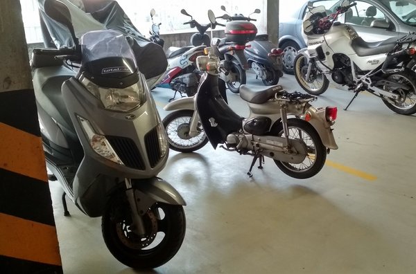 Amikor működik, szeretem a Dinket, mert pont olyan, amilyenre szükségem van: nem túl testes, jól elfér a kocsisorok közt, de azért elég nagy az ülés alatt a rekesze; 176 köbcentis, vagyis jobban megy, mint az autók 80-85 százaléka, de még nem zabál sokat. Ez úgy értem, hogy a javítgatás előtt 2,6-2,9 között evett. Továbbá igen olcsón vettem. Nyilván rengeteg időt spórolok, hogy csúcsidőben egy óra helyett 30-35 perc alatt teszem meg ugyanezt az utat a Flórián tértől hazáig, de a fogyasztás is egy érv, hogy ne a 10 litert kajáló Audival menjek.