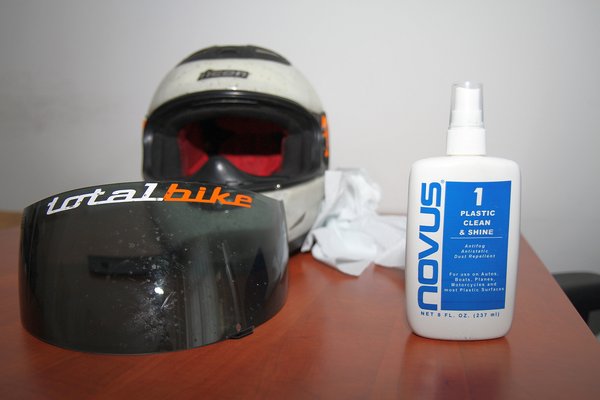 Ha már tiszta a sisak, akkor jön a Novus, pár spriccelés, majd a törlés, és kialakul az ujjbegyekkel is érzékelhető selymesen síkos bevonat. Nehéz elmagyarázni az élményt, kicsit olyan, mintha bútorfényt fújnék rá, csak nincs szaga. Amúgy a bútortisztító is jó sisaktisztító, csak nehezebb csepp- és csíkmentesen letörölni, de az is nagyjából hasonló bevonatot képez, azért van az, amikor valaki trehányul tisztítja le vele a komódot, akkor a környéken a parketta halálos csapdává változik.
