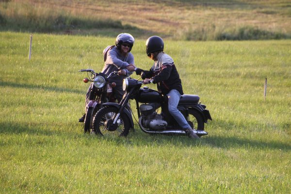 A kiírásból látszott, igyekeztek még több programot csinálni, ősmaradványokat mutatni, meg Landartot villantani (például este hangulatvilágítást kapott az erdő), lettek szponzorok is, ráadásul scrambler-sulit is szerveztek. Jaja, most a scrambler a menő, a cafe racer nagyon 2010, de azért senki nem mutogat rád ujjal, ha nem bütykös a gumid és a kipufogód nem a combodat melegíti belülről. És lehetett az Ipolyban fürdeni, meg traktorozni, felvonulni. Na, ezek nagy része nekünk a kései érkezés miatt kimaradt.