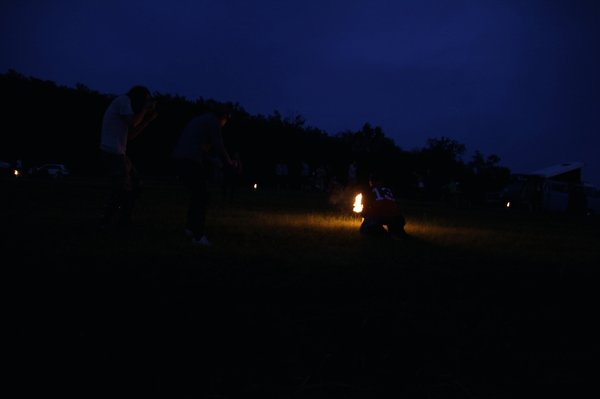Tényleg ez a domboldalba szervezett játék a fénypontja az egésznek, világítanak a fáklyák, veterán és majdnem veterán endurók tépik rajtnál a sarat. Közben a naplemente elképesztő színekkel világítja meg a dagonyázásra alkalmatlan, tarlóra letámasztott motorokat. Az ember folyamatosan kattintgat, hogy jó képeket tudjon elrakni a buliról.