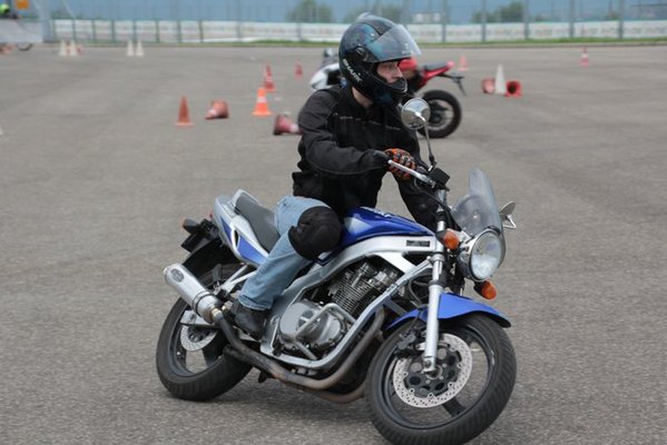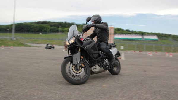 A helyes féktechnika és az ellenkormányzásos elkerülés, valamint a szlalom és a kanyartechnikák adják a délelőtti képzés tananyagát, míg a délutániak ugyanezzel kezdenek, de aztán alacsony sebességű, precíz manőverekkel és lejtős/emelkedős gyakorlatokkal képezzük tovább őket - illetve délután kinn leszünk mi is a szerkesztőségből motorozni egy kicsit, illetve szükség esetén besegítünk, válaszolunk a felmerülő kérdésekre.