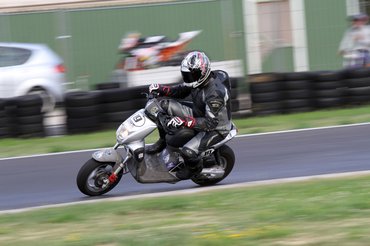 Kezdjük az egyik újoncunkkal, Perna Mandiner Marcival, aki még közelről sem látott robogót, de nem okoz neki gondot semmilyen kétkerekű jármű, ugyanis dicső múltnak örvend a gyermekkorában megszerzett motokrossz magyar bajnoki címeivel. Marcival sok munkánk lesz a futamig, főleg, hogy kikössük számára: nem mehet le a pályáról egy kis terepezés kedvért.