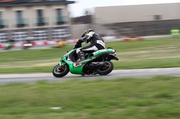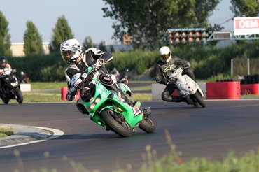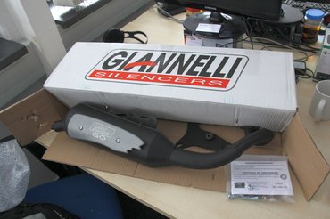 A verseny után sokat dumáltam a BME-s csapat tagjaival, és ők mondták, hogy igen, a Giannelli kipufogónak nem megy olyan mélyen a könyöke. Bistei fel is hívta a békéscsabai robogós guruját - most jön a belterj belterje, a csabai robogóguru a New Kids Scooter kanyarpitonjának az apja, ha jól értettem - aki fejből mondta a cikkszámot. Így került a csomagba a Giannelli Go, Gépátvétel Gábor is jóváhagyta, de szólt, hogy ne felejtsük el kivenni belőle a fojtást, mert különben vánszorgás lesz csak.