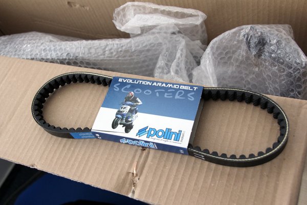 A Polini kevlár-aramid hajtásszíj szintén kötelező, nagyon sok múlik a nem kopott, nem megnyúlt szíjon, az első, visontai versenyen a mezőny nagy részét odaverő kigyorsítási képességünket nagy részben a jól beállított Polini variónak köszönhetjük. Tavaly az Apriliánk Malossi variátort és szíjat kapott, bár eléggé fáradt blokkal álltunk rajthoz, a versenyzőink szerint messze nem a mi bringánk volt a leglassabb, néhány gyorsabb csapatot is ki tudtak előzni a srácok az egyenesekben. Hogy a két minőségi olaszból melyik a tuti, az már tényleg hitéleti kérdés - az SPD-nél akciós volt a Polini, nem is magyaráznám tovább az okokat.
